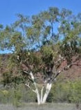 Corymbia aparrerinja is a dominant species in the dry, rocky regions of Central Australia, thriving on steep slopes, red sand flats, and dry creek beds.