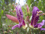 1.5m high x 1.5-2m wide. Compact spreading shrub with dark green leaves and deep purple tubular flowers with spots inside. Flowering time is from late Autumn to early Summer. Prune to shape after flowering. Will handle heavy soils and even deep sand. Bird attracting.