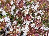 This Australian native ground-cover boasts dense growth, slender burgundy-purple foliage, and abundant white flowers in summer. Perfect for use as a ground-cover on slopes and to combat weeds in hard-to-reach areas. This plant also attracts birds. Ideally suited for full sun exposure to maintain its colourful appearance. Thrives in well-draining, organic-rich soil. Resistant to frost and drought. This Myoporum grows quickly; ensure proper mulching and watering until established, prune once a year for new growth and flowers, and fertilize with controlled release native fertiliser annually. Grows to a compact 15-30cm in height and spreads up to 3m in width.