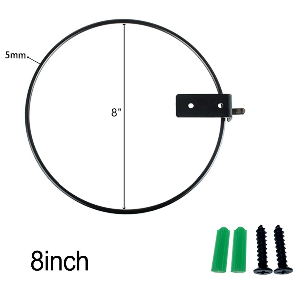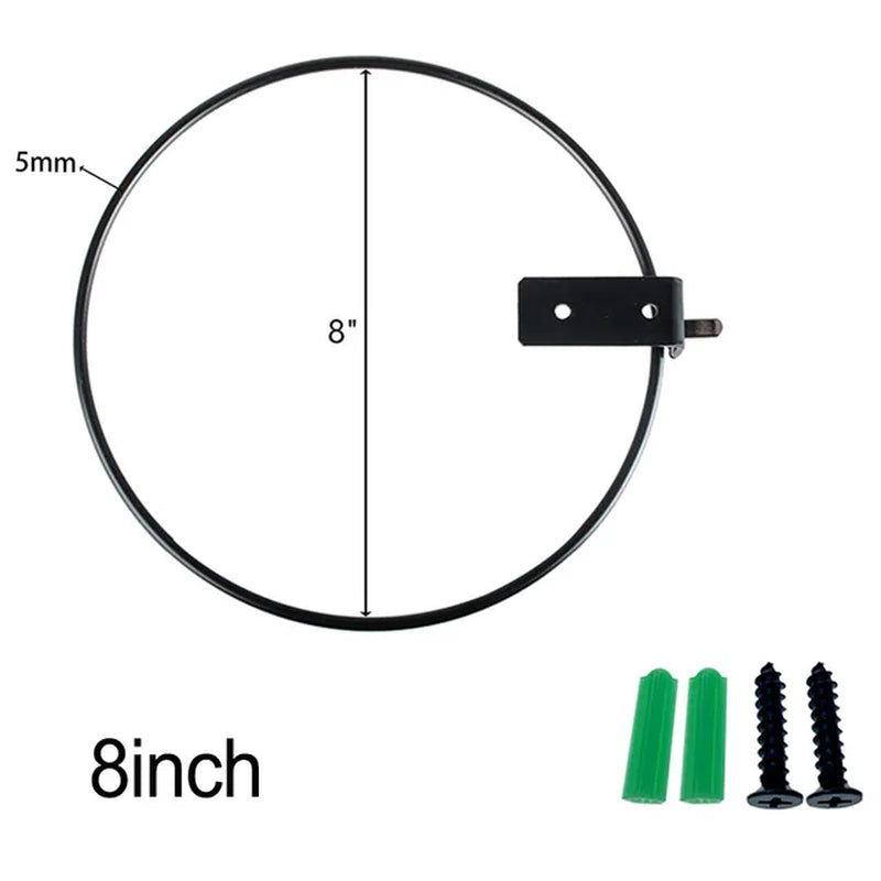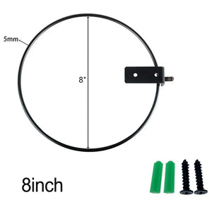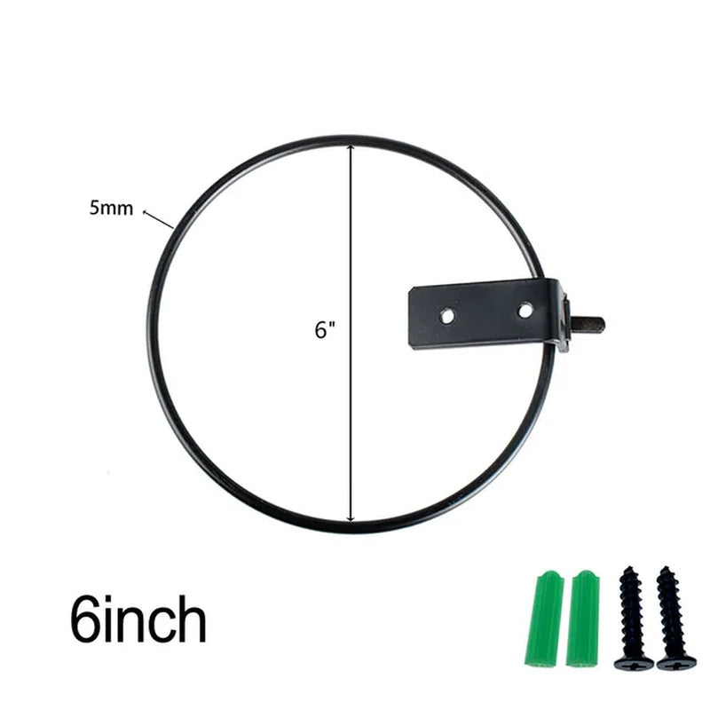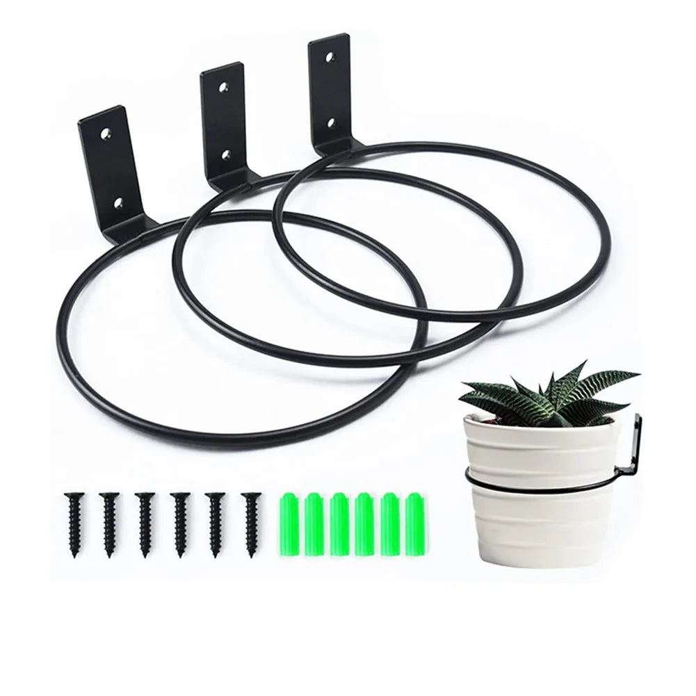 This Plant Holder Ring Wall Mounted is constructed from high-quality iron material for durability and includes screws for secure mounting.