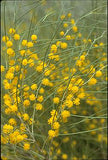 Beautiful spreading shrub with silvery-grey leaves and golden ball-shaped flowers in Spring.