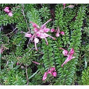 Its foliage is fine and dense, making it an excellent ground cover. Periodic blooms appear throughout the year, with especially abundant clusters of 'knotted finger' type pink flowers in the winter to spring.