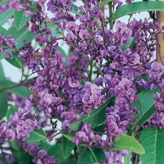 A vigorous climbing form of this wonderful pioneer plant with dark green leaves and long sprays of purple flowers in spring. This plant makes a great ground cover but will also climb vigorously if given something to support it.