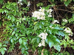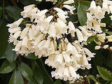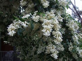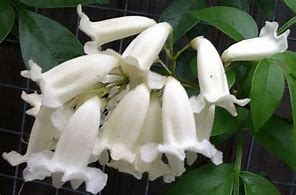 Pandorea pandorana snow bells is a vigorous evergreen climber with dark green leaves and masses of fragrant snowy white flowers from spring to summer with spot flowers through to early winter. This plant can be used as a ground cover but will also climb vigorously if given something to support it.