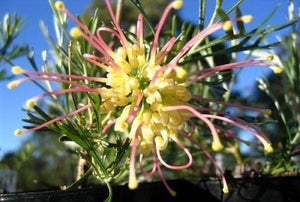 3m x 3m. Yellow Flower. Shrub. Usage: Garden, Screening & Farm. Soil Type: Sandy and Acidic. Frost and drought tolerant. A hybrid between G.olivacea x G. thelemanniana. This plant is similar to G. Winparra Gem