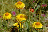 A low growing soft-wooded perennial with small dark green leaves and yellow everlasting flowers, it has a naturally good growth habit. Makes a great rockery, border and pot plant. Good heat tolerant plant, performs best in full sun but will tolerate light shade. Dry soil conditions will reduce the flowering. Fertilise lightly through the warm months. To preserve the flowers, pick before they open and hang upside down to dry.