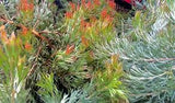 Low growing shrub has soft silvery blue-green foliage with subtly contracting red tips. Small pink/red flowers emerge in Spring attracting nectar feeding birds. Be sure to find an open sunny position and it particularly likes dry conditions and lighter/sandy soils. Water until established. Can tolerate light frosts and drought.