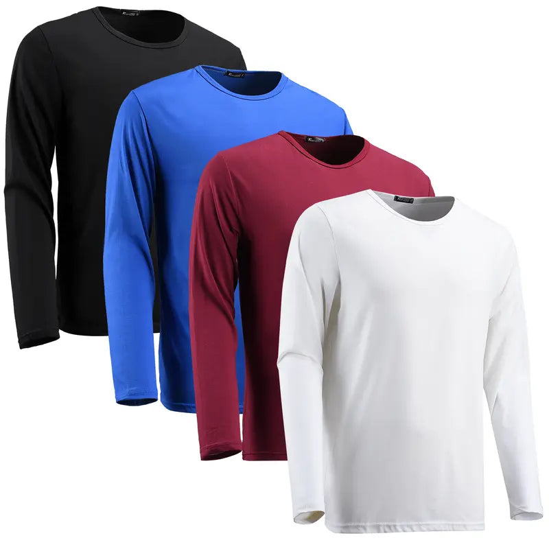 4 Pieces: Men'S Dry Moisture Wiry Sweat Sports Performance Long Sleeve round Neck T-Shirt