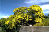 Fringed Wattle is an evergreen, short trunked tree 6m high x 4m wide, with a dense foliage cover of soft, light green leaves. It flowers in mid Winter and Spring, producing masses long spikes of fluffy, butter yellow flowers. It responds well to regular pruning to keep it tidy and compact. This tree is great as a fast growing screen because of its dense foliage. Can tolerate most soils, however prefers a well drained sandy soil. Ensure adequate water during dry spells as it will die off in drought periods. Cut back new growth by a third after flowering to keep tidy.