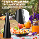 Measuring 25*9*9CM, this light and odorless fan utilizes small points that refract light, creating a deterrent for insects.