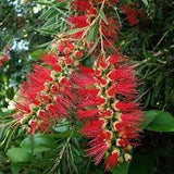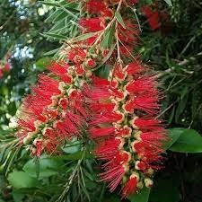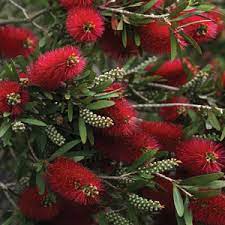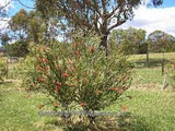 The purple-red brushes open in late spring and continue through summer, flowering much later than other small bottlebrushes.