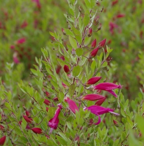 Perfect for native and water-wise gardens, this medium shrub with narrow, fresh green leaves and vibrant tubular flowers is highly tolerant of heat, drought, frost, and various heavier soils ranging from sandy clay to alkaline loam.