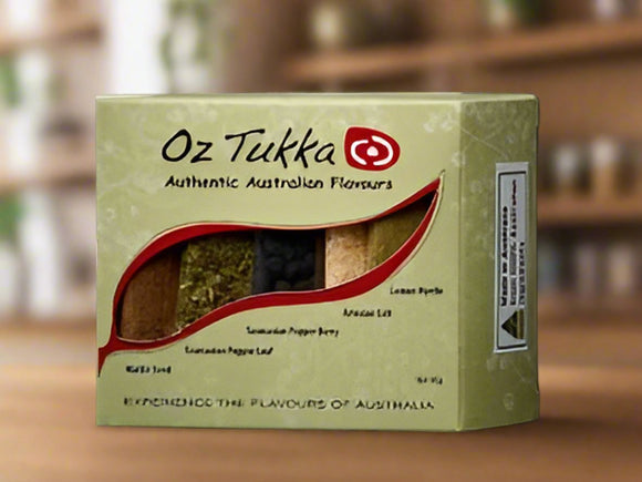 Introduce the exotic flavors of the Australian outback, alpine rainforests, and subtropical coastal regions to your cooking with Oz Tukka's 5 spice pack.