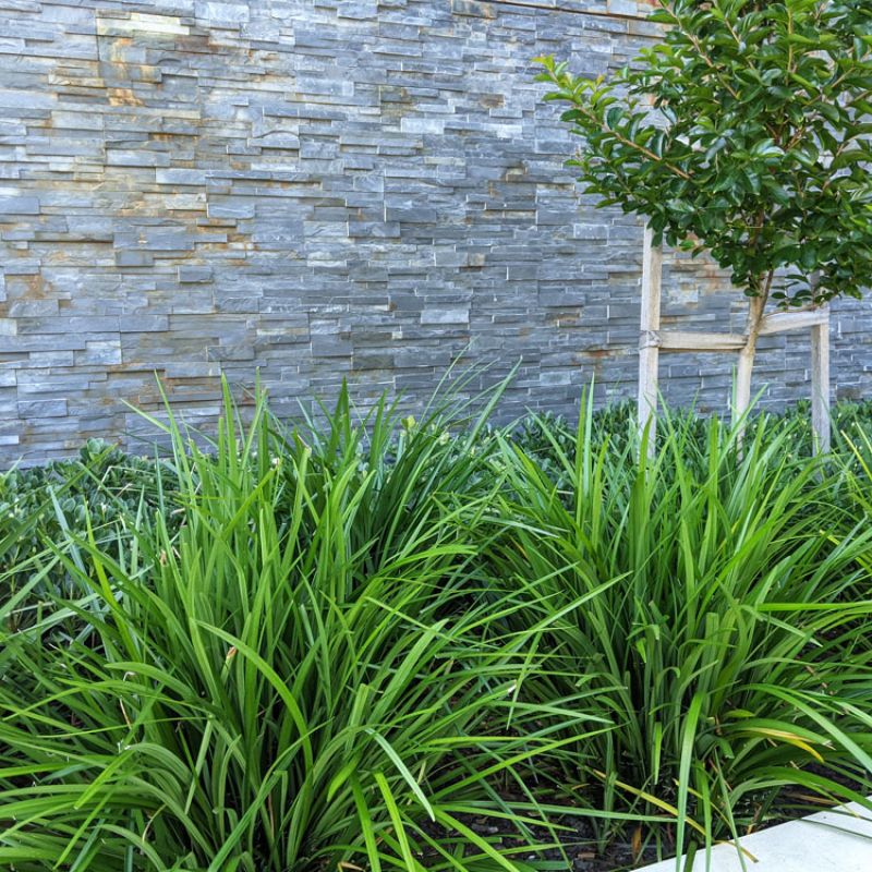 Evergreen Giant is a clumping plant with long narrow, deep green leaves. It produces purple flower spikes through summer and early autumn, followed by dark blue berries. Although the best results are achieved with improved soils, it is a very hardy plant that can thrive in poor conditions.