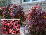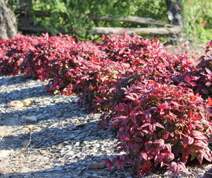Hardy, low maintenance evergreen shrub, with varying scarlet-bronze tones of foliage in cooler months. Only 60cm high and wide, ideal for pots and containers, no-clip low borders and edges. Hot dry sites give brighter colour.