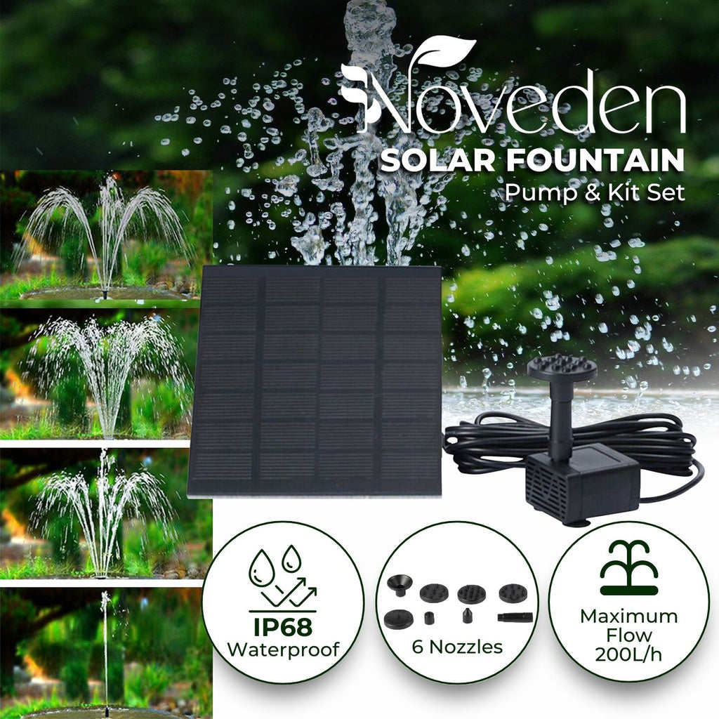 The NOVEDEN Eco-friendly Solar Water Fountain NE-SWF-100-SY harnesses the sun's energy to create a magical water display.