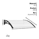 The NOVEDEN Window Door Awning Canopy is designed for outdoor use, providing exceptional protection against water damage and harmful UV rays. With its waterproof and UV protection features, this canopy keeps you and your outdoor space dry and safe from sunburns. Not only that, but it also operates quietly on rainy days and can withstand objects weighing up to 10kg, ensuring durability and longevity. Its easy-to-install design and user-friendly process make setting it up a breeze. Made with high-quality materials, including PC, ABS, and aluminum, this canopy stands at 28.5cm with a 5mm panel thickness. The dimensions are 1m x 2.4m, and it comes in a stylish clear white color.