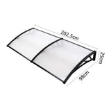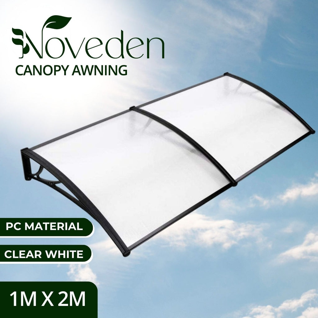 This NOVEDEN awning canopy is expertly designed to provide exceptional protection against water damage, UV rays, and noise disruptions.Its waterproof feature keeps you dry during heavy rainfall, while its UV protection safeguards your skin from sunburns and long-term damage.With a 10kg object resistance and simple installation process, this canopy is durable, functional, and hassle-free.Made with high-quality materials and innovative design, it offers a peaceful ambiance and convenient outdoor enjoyment. Specifications include a PC material, ABS bracket, and aluminium bar, with a 5mm panel thickness, 25cm height, and dimensions of 1m x 1.2m in clear white color.