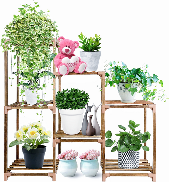 Its clever three-tier design features seven potted ladder shelves, providing ample room to showcase all of your botanical friends.
