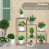 Add style and organization to your plant collection with this carbonized sycamore wood stand - perfect for both indoor and outdoor use.