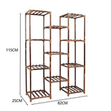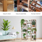 This 3-tier, 11 potted ladder plant stand is made from bamboo and comes in a natural log color, with a product size of 115.06 x 82.04 cm.